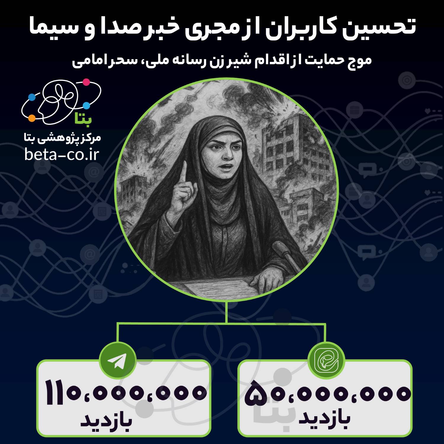 بر اساس داده کاوی محتوای شبکههای اجتماعی توسط #مرکز_پژوهشی_بتا اقدام تأثیرگذار خانم #سحر_امامی در کمتر از ۲۴ ساعت با بازتاب گستردهای در فضای مجازی مواجه شد. 🔺بر اساس ارزیابی دادهها محتوای منتشر شده در این رابطه در تلگرام در مجموع ۱۱۰ میلیون بازدید داشته است. 🔺در ایتا نیز بیش از ۵۰ میلیون بازدید پیرامون این محتوا به ثبت رسیده است. 🔺اکثر قریب به اتفاق این واکنشها، حاوی حمایت، تحسین و قدردانی از اقدام صورتگرفته بودهاند؛